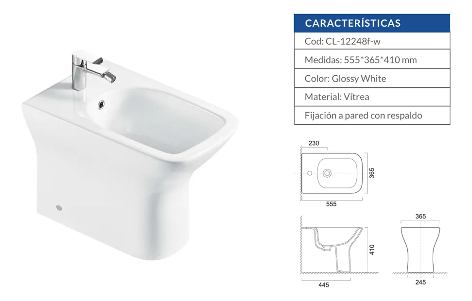 BIDET DE LOZA BLANCO 555cm*365cm*410cm