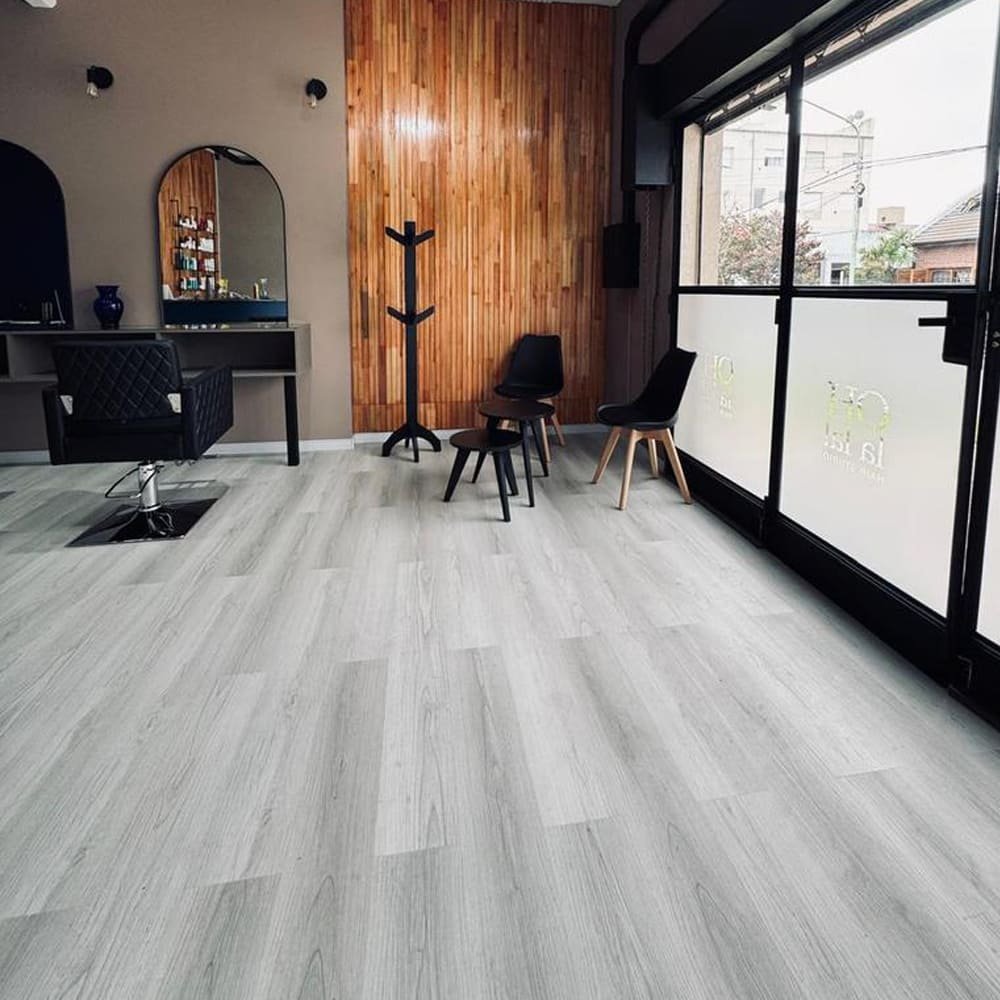 PISO VINÍLICO CLICK ALTO TRÁNSITO CON MANTA ENCASTRABLE 5MM CENIZA IMITACIÓN MADERA