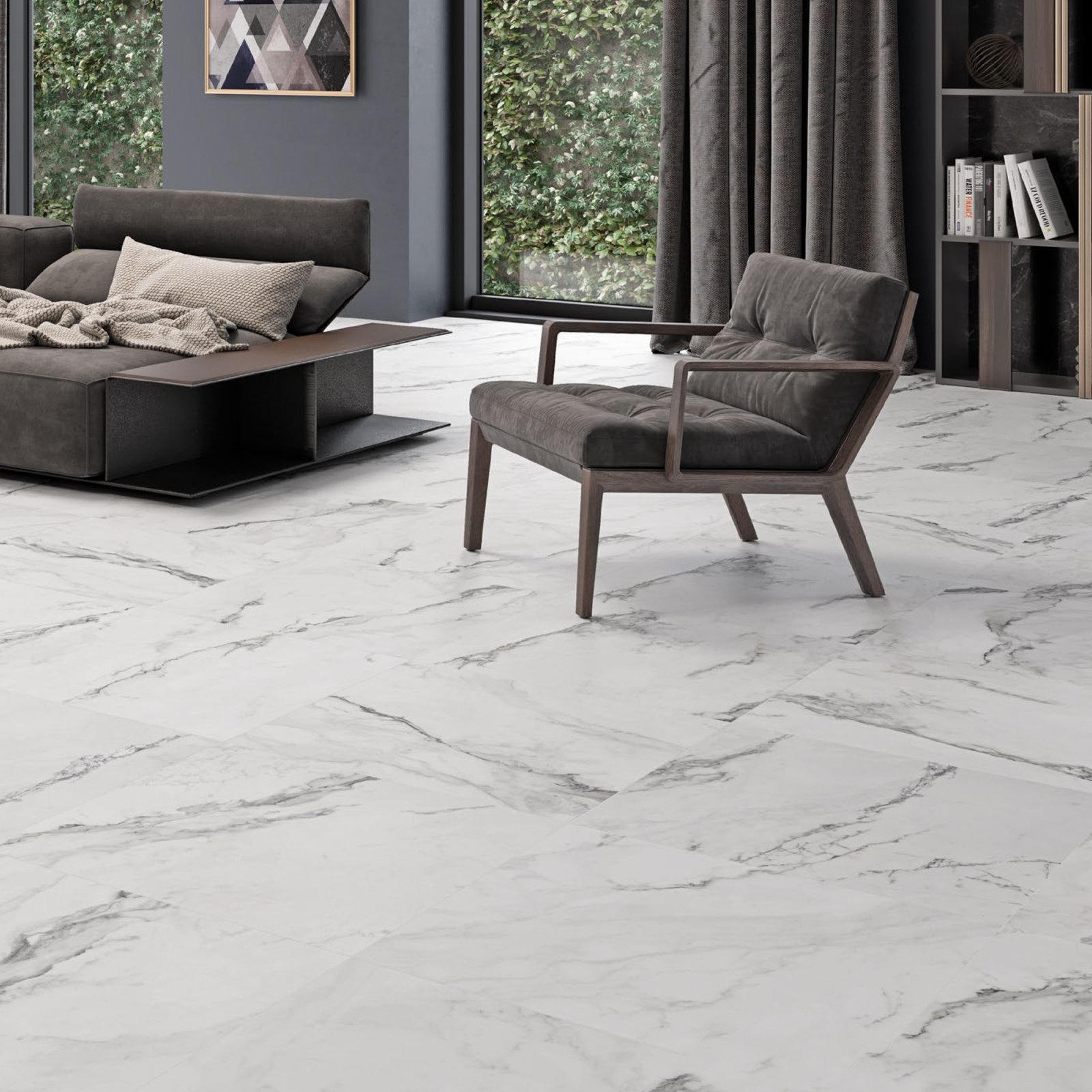 Porcelanato Simil Mármol Carrara 60×60 Cm Gris Y Blanco
